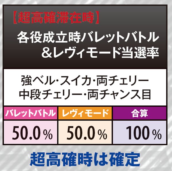 バレットバトル準備中のチャンス役時は、高確滞在中と同じ確率でARTの抽選またはバレット獲得の抽選が行われている。引き損になることはないのだ。