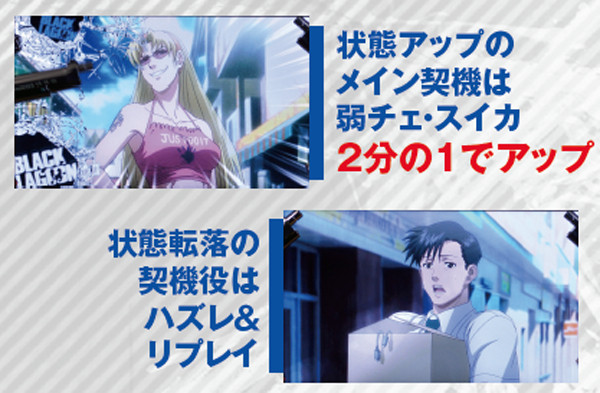 スパイキーの『ブラックラグーン2』は、4つの上乗せ特化ゾーンを搭載したART機。 基本的なゲーム進行は前作を踏襲しているが、今作では通常時からバレットを獲得できるチャンスゾーン「REVYMODE」を搭載。突入時にはハズレを含む全役でバレット獲得抽選を行い、チャンス役を引けば獲得確定となる。 新上乗せ特化ゾーン「ヘルズラッシュ」&「スーパーヘルズラッシュ」の出玉力にも注目だ! |