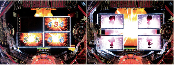 回転開始後のブラックアウトで発生するこのリーチは、サブ液晶でテンパイするライン数が多いほど図柄揃いの期待度も高くなる。赤エフェクトなら連チャンは目前だ!