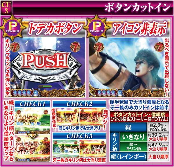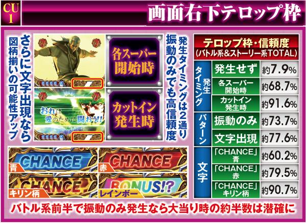 バトル系&ストーリー系に共通するCUは、比較的に視認しやすいものが多く発生タイミングも分かりやすいため、それぞれのアツいパターンさえ理解してしまえばチャンスの把握は容易。どれも信頼度が跳ね上がる激アツチャンスアップが数多くある箇所なので、要チェックだ。