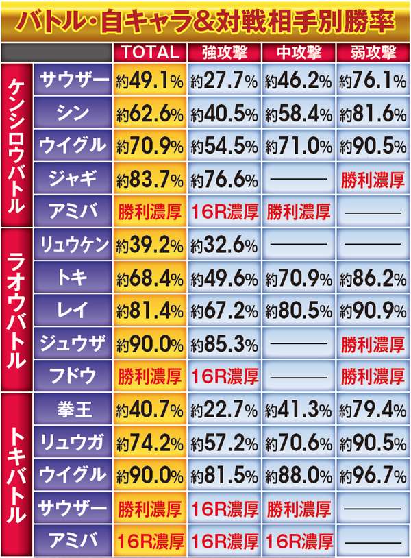 ※バトル勝率の数値はケンシロウバトル&編集部調べのものです