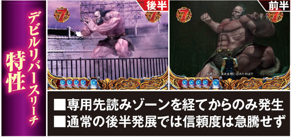 バトル系リーチに新たな強敵「デビルリバース」と「牙一族」が登場。原作通りの展開でケンシロウが勝利すれば、大当りは目の前だ。