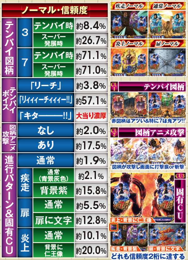 通常時・チャンスアップ別のノーマルリーチ信頼度