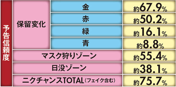 | 大当り確率 | 1/99.9(通常時) 1/99.8(高確率時) |