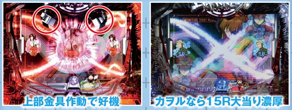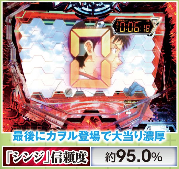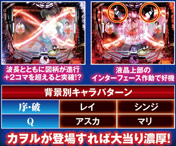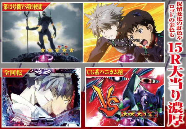 回転開始時に、原画のキャラが背景に登場する。その中にカヲルがいれば超激アツとなる。