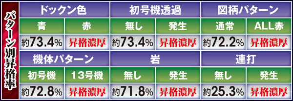 共通チャンスアップは「ハニカム柄」、「最終カットイン」に加え、「カット違い」や「画ズレの有無」など多数。