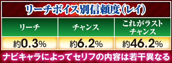 搭乗キャラや各チャンスアップによって期待度が変化するシリーズおなじみのリーチ。主に突確当選契機として活躍する。