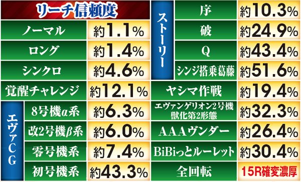 通常時・リーチ信頼度一覧