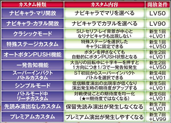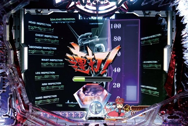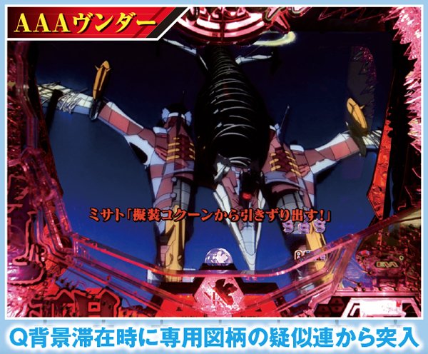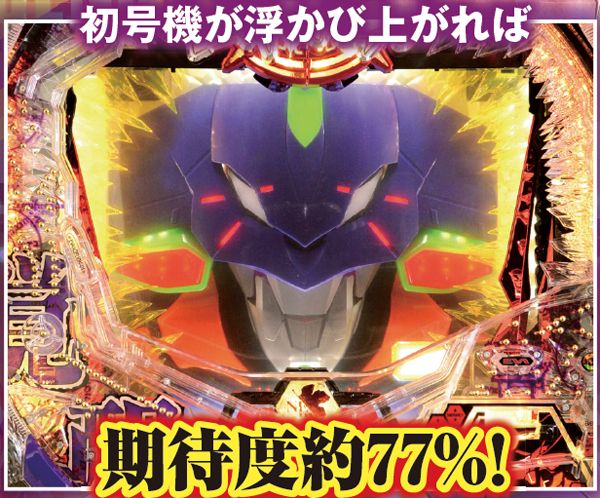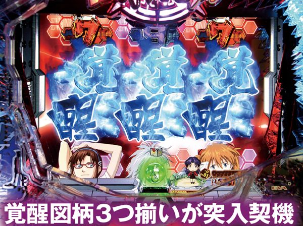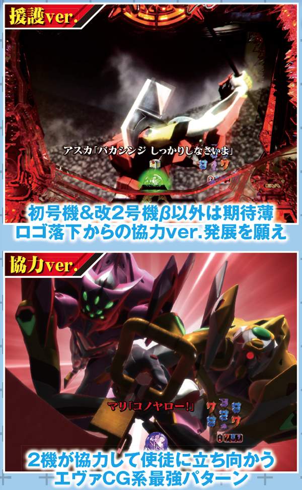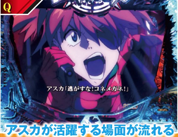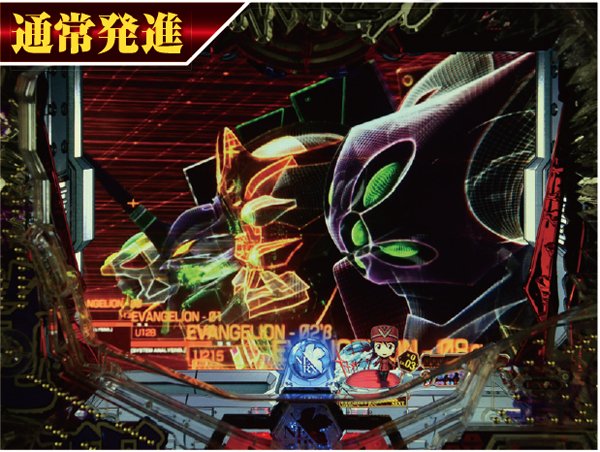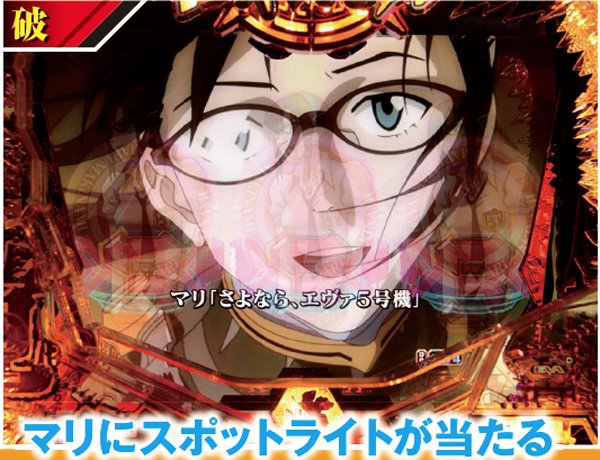 新劇場版『序』『破』に加え『Q』までをも網羅&新スペック新キャラ登場で全てが一新。 潜伏確変などはいっさいなく、初当りを引けば必ず電サポ付きST100回転のインパクトバトルモードへと突入する。 ST中の連チャン率はおよそ80%で、電チューからの大当りの半分が15Rのスーパービッグボーナスと、出玉感も申し分ない仕様となっているぞ。 |