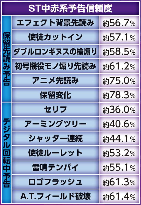 ST中・赤系予告信頼度一覧