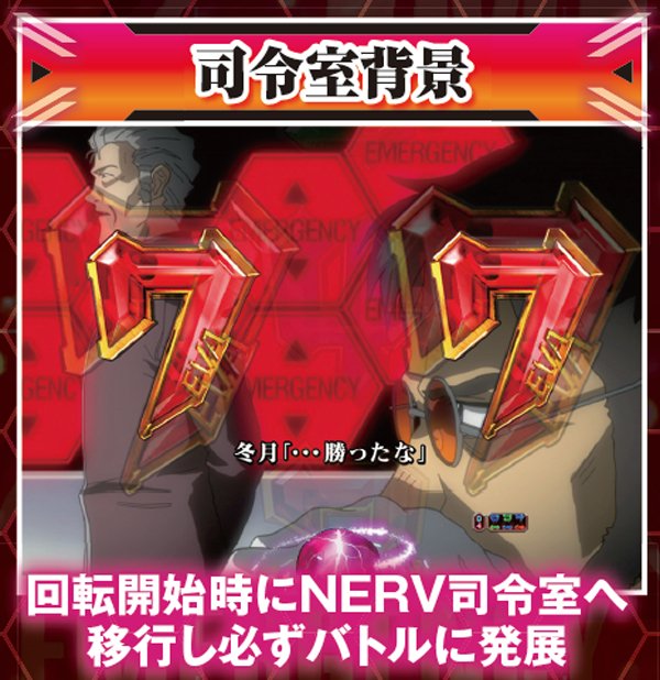 フィールドをエヴァが躍動する基本背景から、司令室へ背景が移行すれば大当りは目前。
