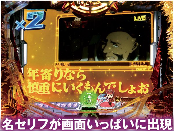 作中の名シーンや名台詞が流れるSU予告も種類が豊富。色系のチャンスアップが重要で、「金枠」が出ればアツいぞ。