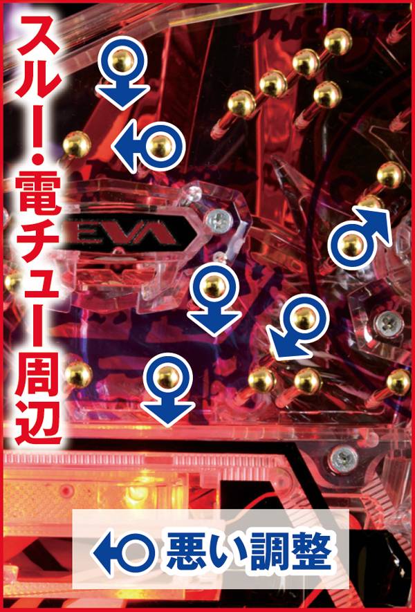 簡単な手順の止め打ちで無駄玉を防止することが可能。電チュー周辺、特に右側のコボシに着目した釘チェックも事前に欠かさず行おう。