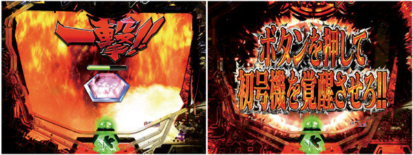 ノーマル・ロング・シンクロなどから発展。ボタンを押して初号機が咆えれば大当りとなる一撃系の演出。