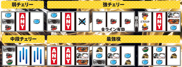 ※最強チェリー・中段チェリー・最強チャンス目・特殊役は当選確定