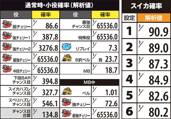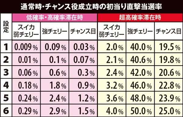 設定の差ある小役確率
