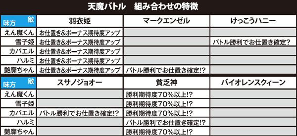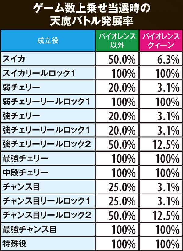 チャンス役での直撃上乗せもあり、その後に天魔バトルへ発展する場合もある。