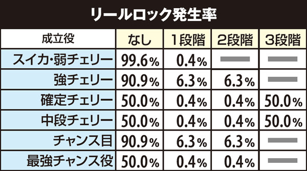 リールロック発生率・チャンス役別