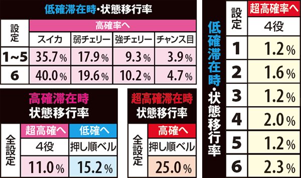 状態移行率・各役成立時