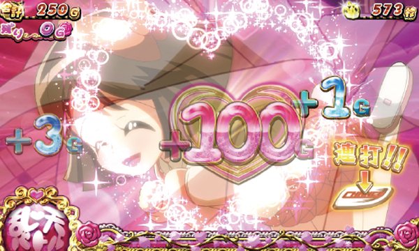 ドロロンボーナスは30G継続。この間にできるだけARTのゲーム数を上乗せしたい。一方のハ〜トふる♥ボーナスはプレミアムだ。