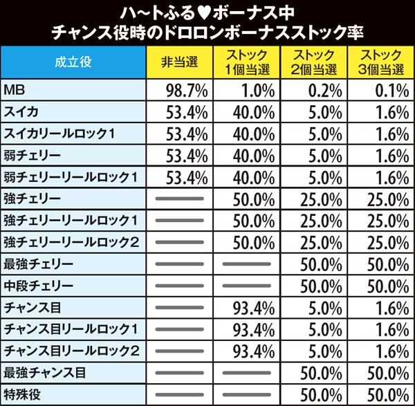 ハ〜トふる♥ボーナス中・ドロロンボーナスストック率
