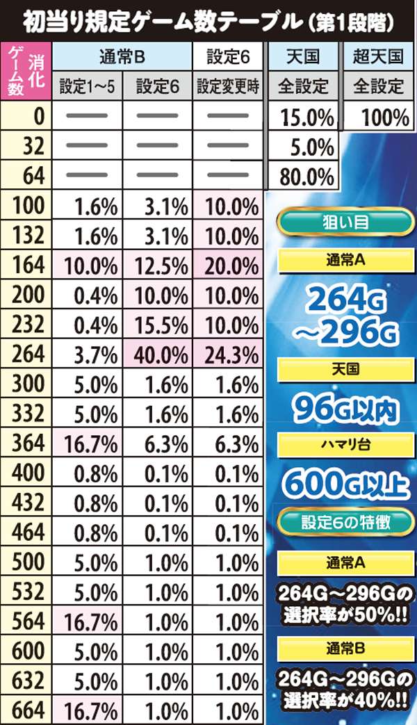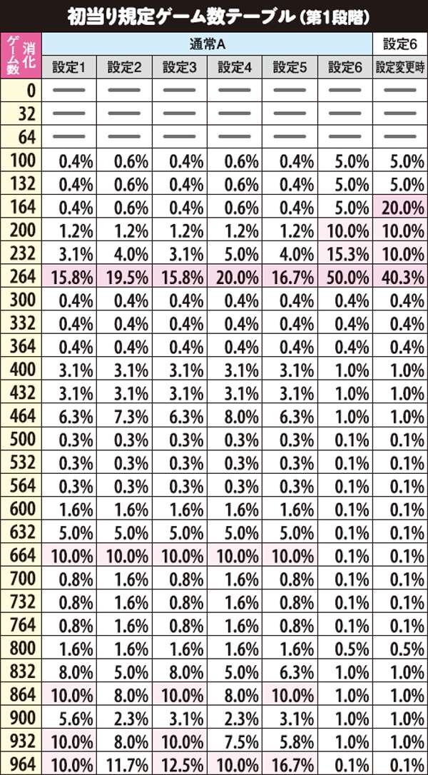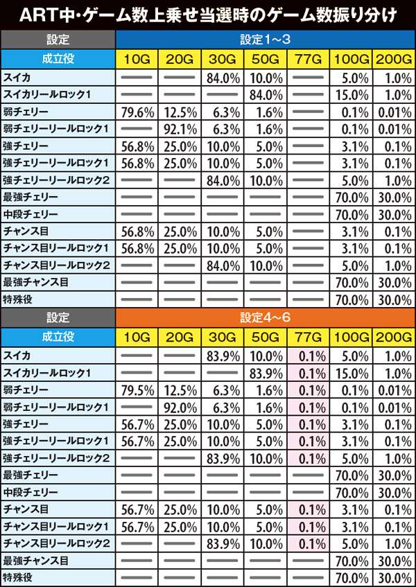 規定ゲーム数は2段階で抽選されており、その合算がゲーム数となる。2段階目は前兆の役割を果たし、最大で32G。