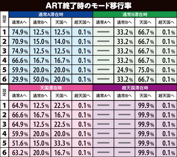 ※設定1〜5のART後と設定変更後は共通