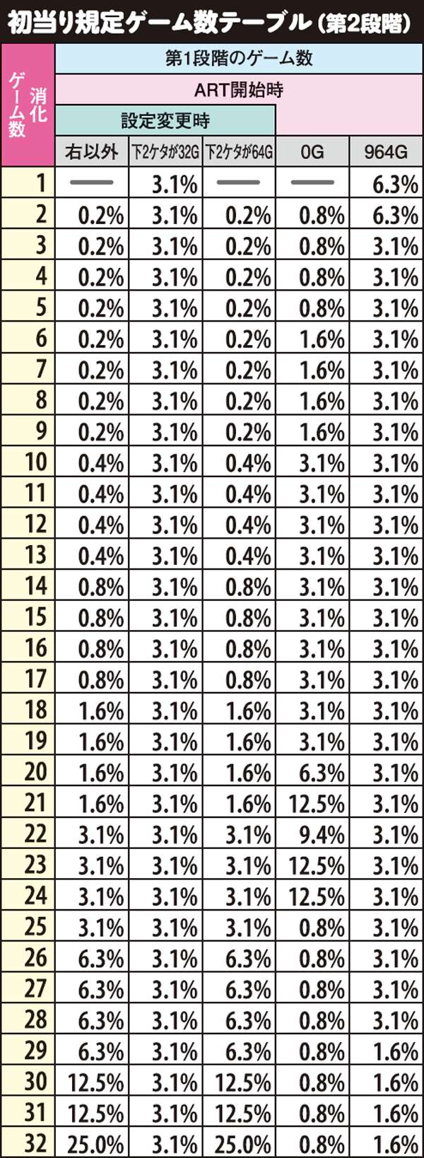 規定ゲーム数テーブル(第2段階)