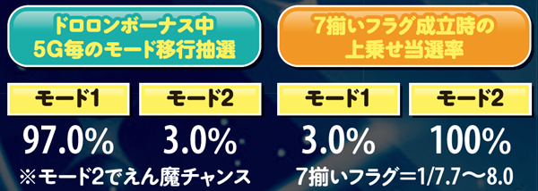 ドロロンボーナス中・上乗せに関する数値