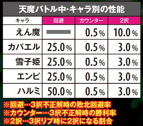ART中にゲーム数上乗せに当選したら、天魔バトルにも発展するチャンス。発展率は対戦相手で異なるが、次回の相手はART開始時もしくはバトル勝利後に予め決められる。