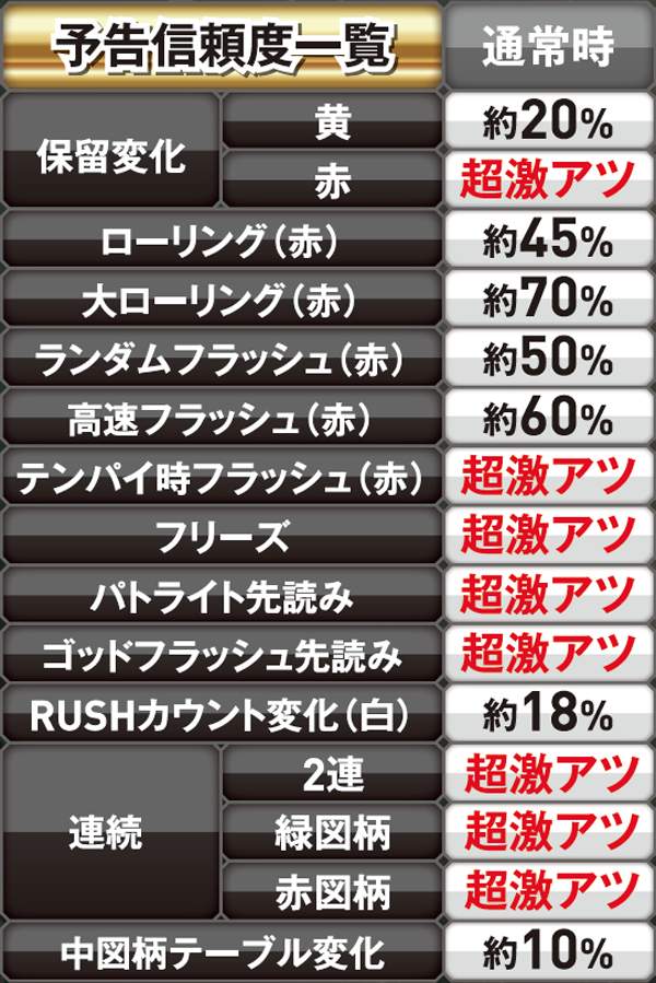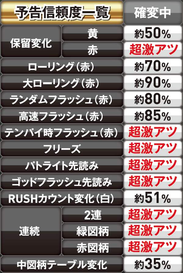 パールラッシュ中(確変)・予告信頼度