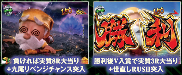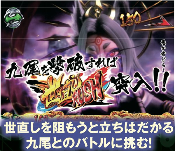 九尾とのバトルが展開される大当り。勝ってV入賞すれば、世直しRUSH確定。