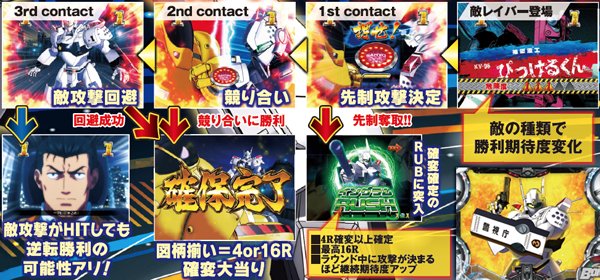 勝利ポイントは3箇所で、そのタイミングによって大当りの種類が変化。また確変継続が確定するRUBと図柄揃い大当りはどちらも、その半数以上が16R大当りとなるため、大量出玉がループする爽快感が味わえること間違いナシだ。