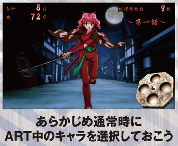ARTはセット継続するたびに第1話→第2話と表示が変化していくが、これが第12話になり、その後の継続バトルに成功すると新選組全員集合画面(楽曲付き)に移行する。ここで継続バトルに失敗し、ARTのストックもない場合は(ストックがあれば復活→全員集合画面へ戻る)ボスを倒すムービーが発生した後40Gのエンディングムービーへと繋がる。