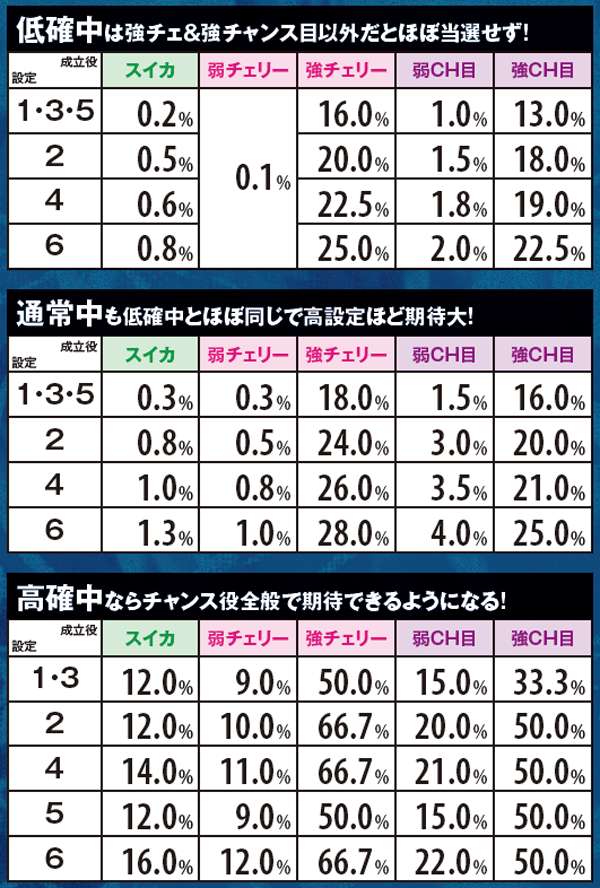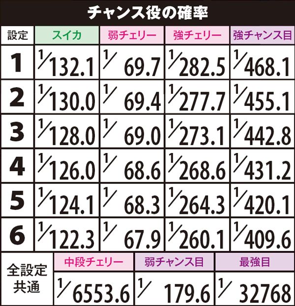 解析情報通常時 > 基本・小役関連 > チャンス役の確率を更新しました