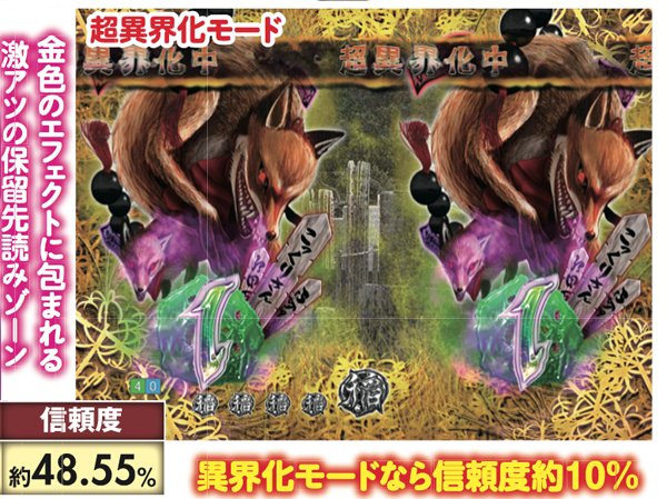 4大演出は先読みやスーパー発展時演出として発生する。特に先読みの超異界化モードの信頼度は50%近い。