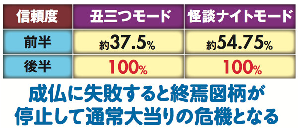 4つの怪談が語られる怪談ナイトSPリーチは電サポ中専用リーチで、発生するだけで大チャンス。さらに後半に発展するとモードを問わず大当り確定となる。