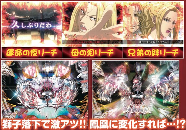 エピソードリーチ発展時は獅子役モノ作動で激アツ、反転して鳳凰に変化すれば幸福が訪れる!?