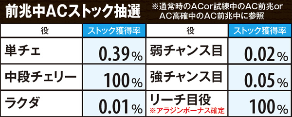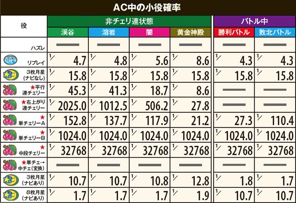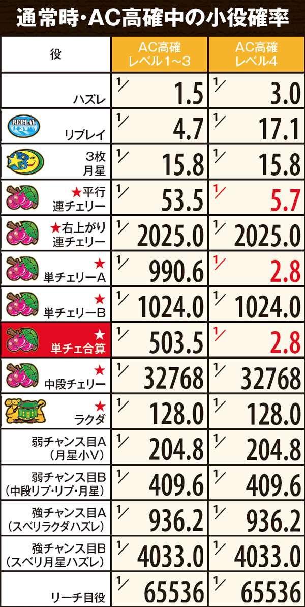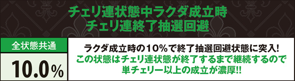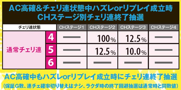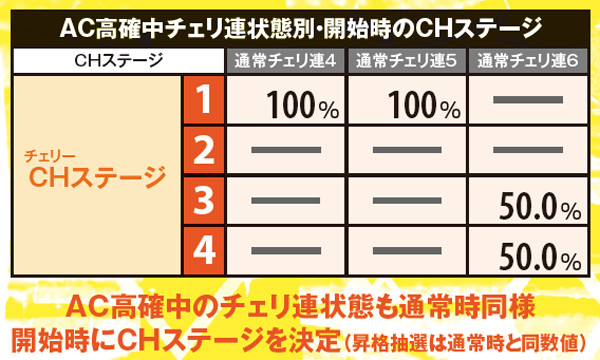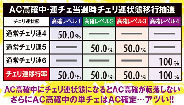 AC高確中にチェリ連状態に突入した場合も、終了までAC高確の転落抽選ナシ。
