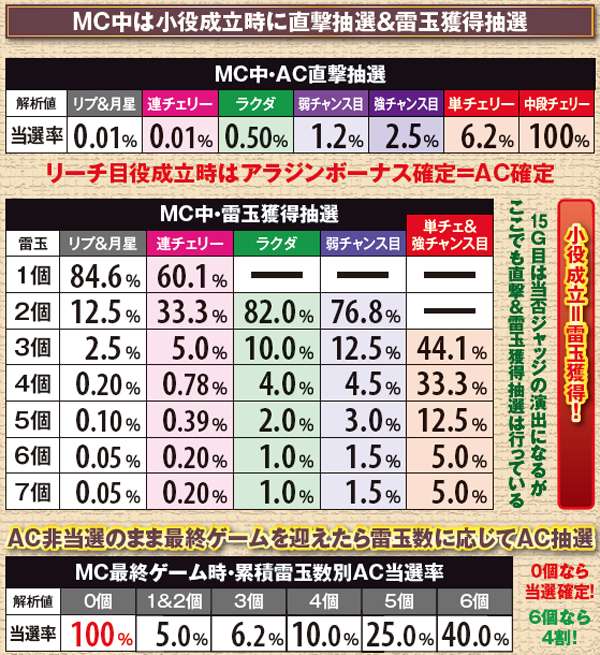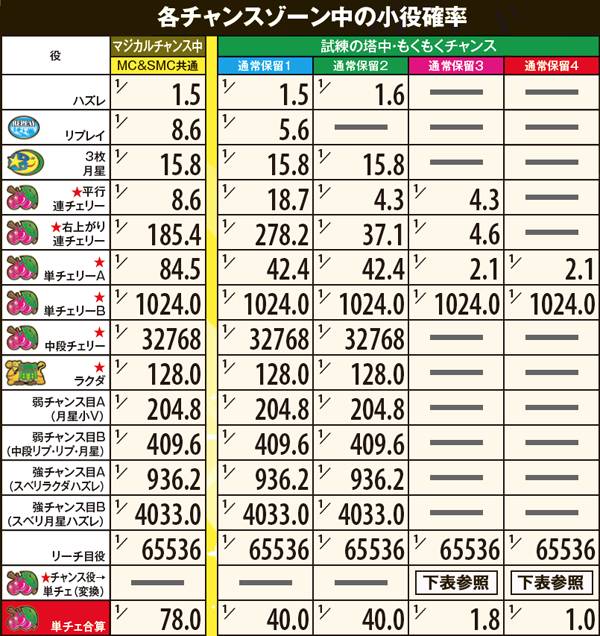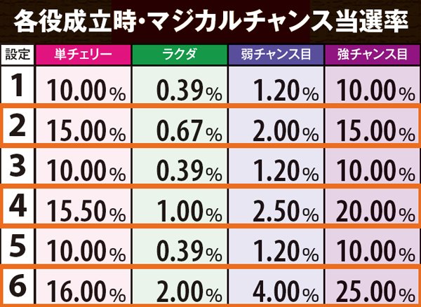 マジカルチャンス当選率・各役成立時