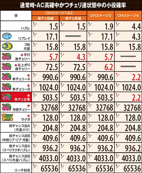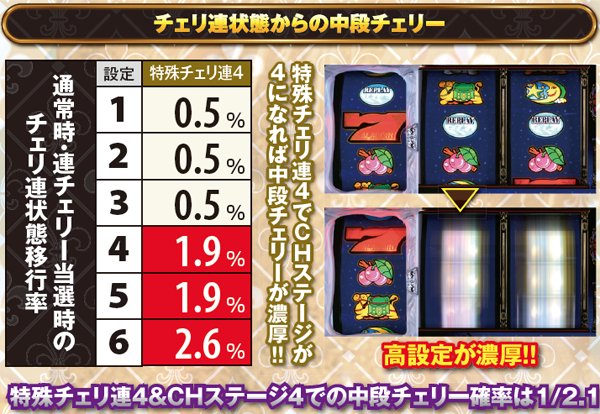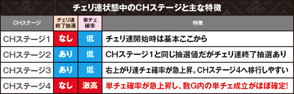 ●チェリ連状態は内部的に7つ存在…さらに4つの「CHステージ」が単チェ当選のカギを握る