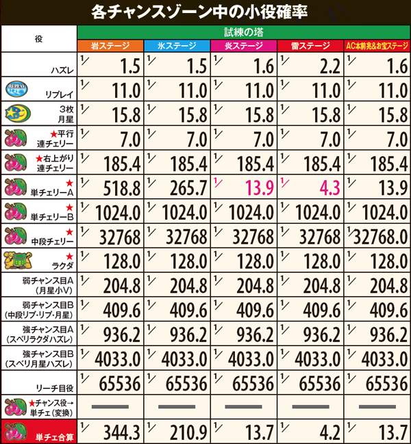 試練の塔当選率・各役成立時
