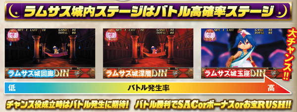 AC中は基本的にバトルにてSACの当否を告知。対戦相手によって期待度は異なり、ジャンゴなら激アツとなる。また、実戦では出現していないが、ラムサスとのバトルもある模様。