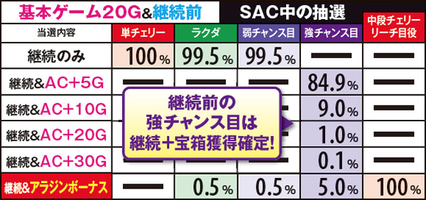 ※SAC中のアラジンボーナスはSACゲームを上乗せ