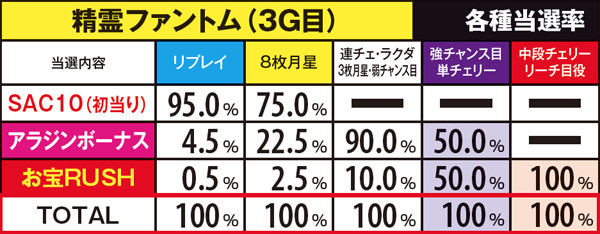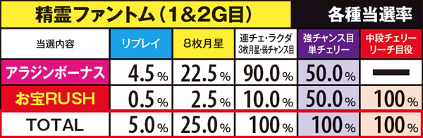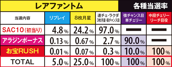 お宝RUSH・演出別のチェリー振り分け