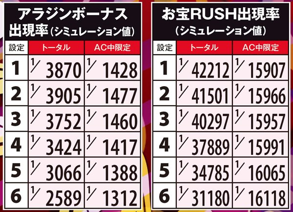 アラジンボーナス・関連する詳細数値