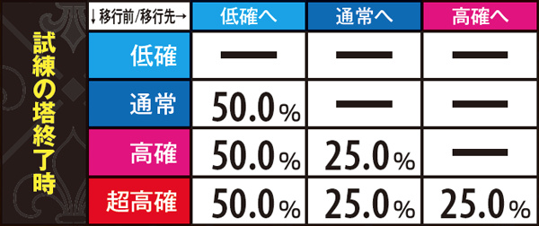 試練の塔・試練失敗時引き戻し当選率