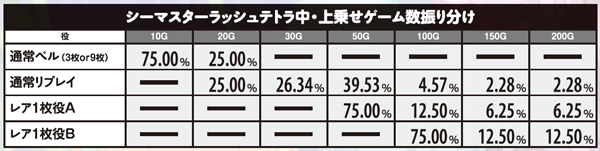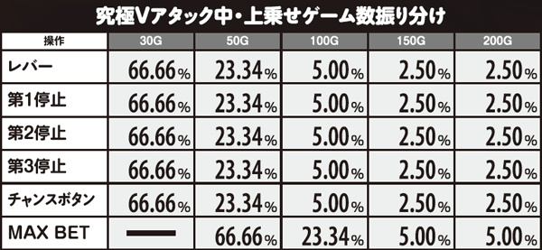 振り分けに設定差はなく、どんな状況であっても発生=200G以上の上乗せ確定となる。最後のMAXBETは必ず50G以上上乗せだ。