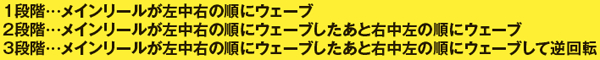 ■2段階…メインリールが左中右の順にウェーブしたあと右中左の順にウェーブ