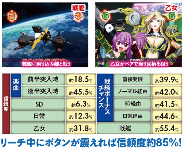 乙女勢揃いのVSマリアリーチは信頼度80%超。戦艦ボーナスチャンスは経由するパターンにも注目だ。